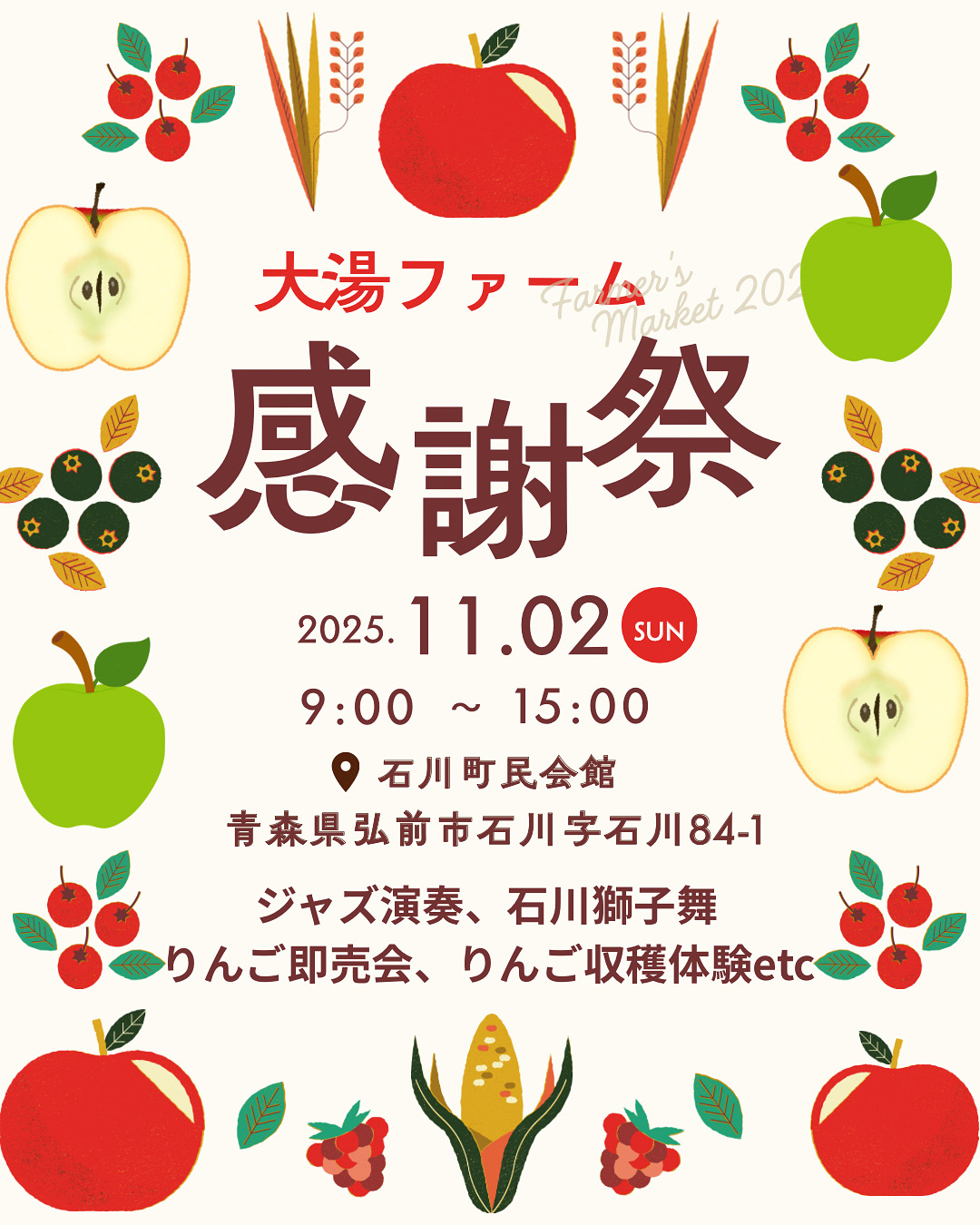 いつも大湯ファームをご愛顧いただきありがとうございます。日頃の感謝の気持ちをこめて、今年も「りんご感…お知らせ -