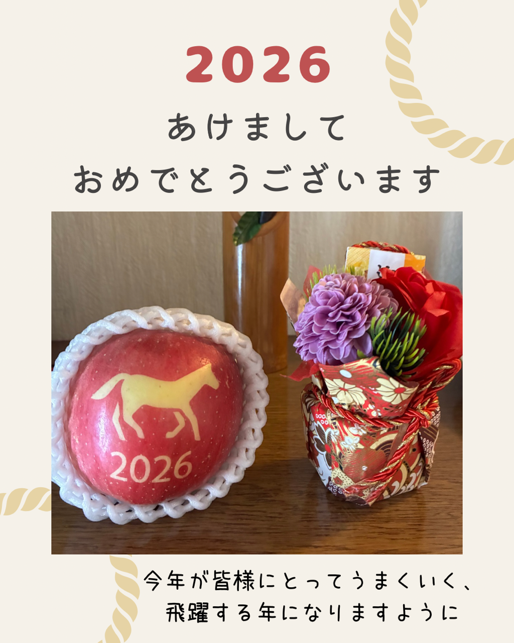 あけましておめでとうございます🎍 今年は「馬の絵入りりんご」で新年のご挨拶です🍎🐎 馬は昔から ・物…お知らせ -