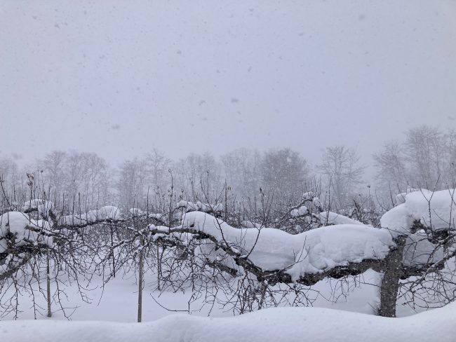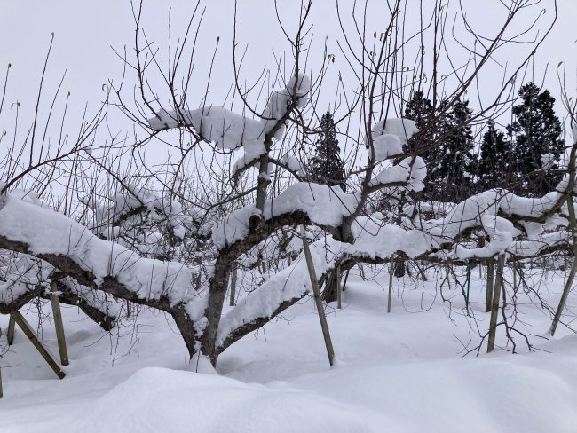 困難を乗り越えてきた大切なりんごの木々達を、今は雪の中でゆっくりと眠らせてあげたい!