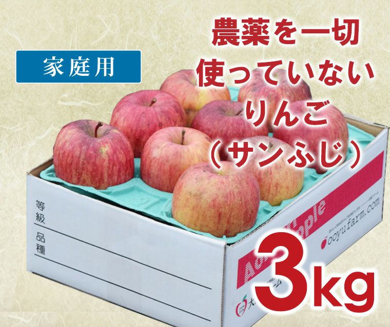 農薬を一切使っていないりんご(サンふじ)【3kg】