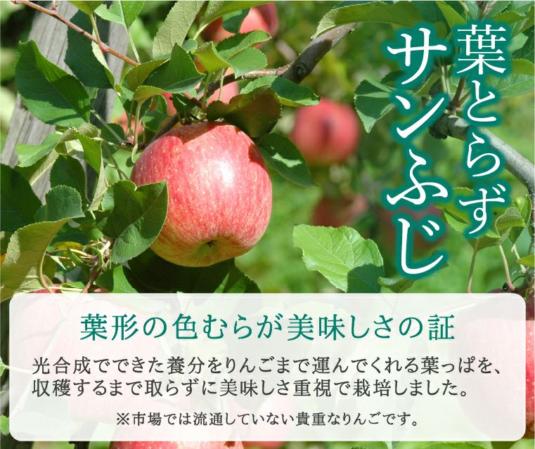 葉とらずサンふじは収穫するまで【葉をとらず】に栽培したりんごです。