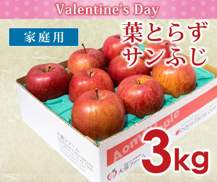 【バレンタイン】葉とらずサンふじ【家庭用】【3kg】Sサイズ