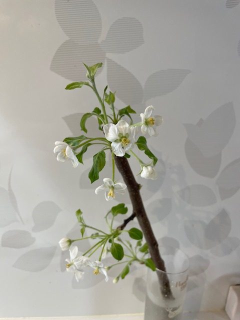 こんにちは、いただきましたりんご🍎のつぼみ無事に咲きましたよ😊