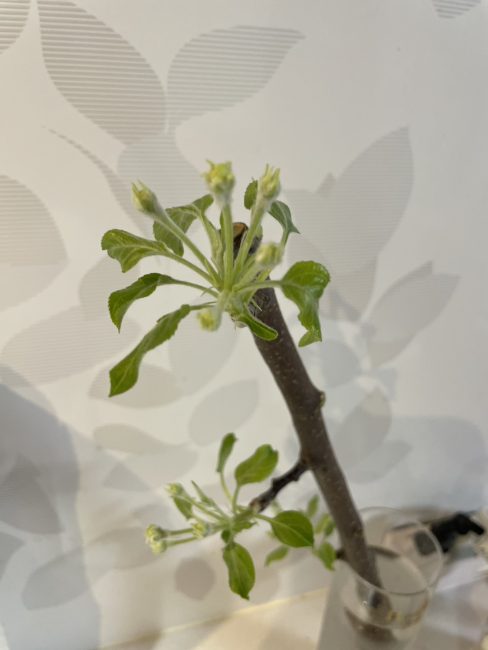 こんにちは、いただきましたりんご🍎のつぼみ無事に咲きましたよ😊
